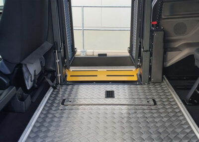 - Zugang ins Fahrzeug je nach gewähltem Umbau via Alu-Linearlift MobilTec PHA1, Auffahrrampe, automechanischer Trittstufe und Doppeltrittstufe möglich
